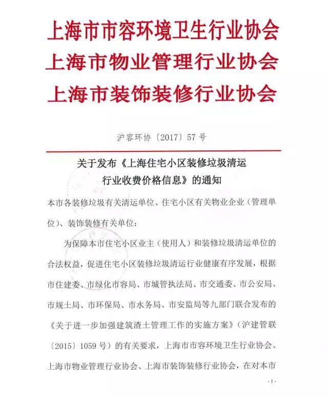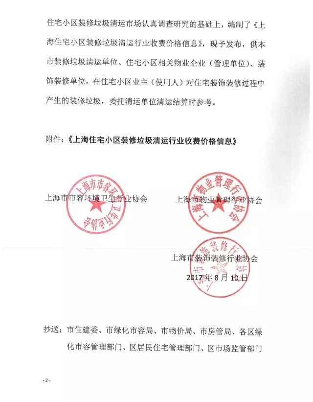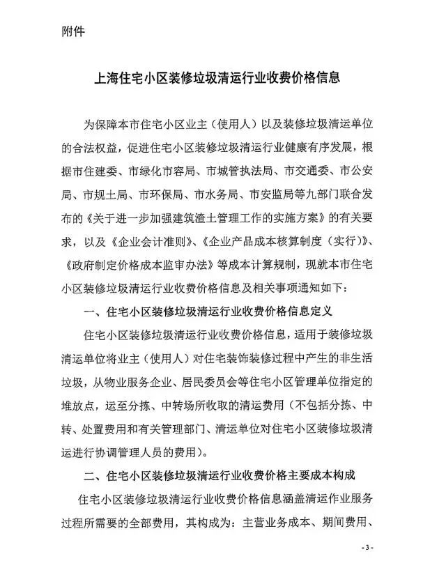 《上海市住宅小區(qū)裝修垃圾清運行業(yè)收費價格信息》全文內(nèi)容如下: