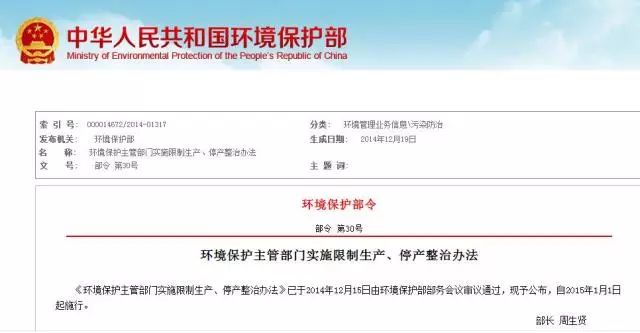 重磅 | 環(huán)保部首次修改《環(huán)保主管部門(mén)實(shí)施限制生產(chǎn)、停產(chǎn)整治辦法》
