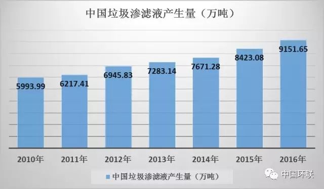 根據(jù)前瞻產(chǎn)業(yè)研究院發(fā)布的報(bào)告, 2016年,國內(nèi)垃圾滲濾液產(chǎn)生量約為9152萬噸,日均產(chǎn)生量約為25萬噸。
