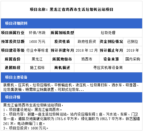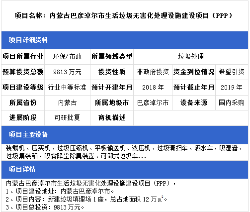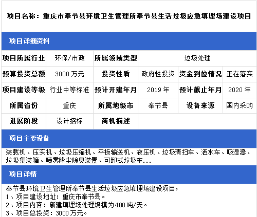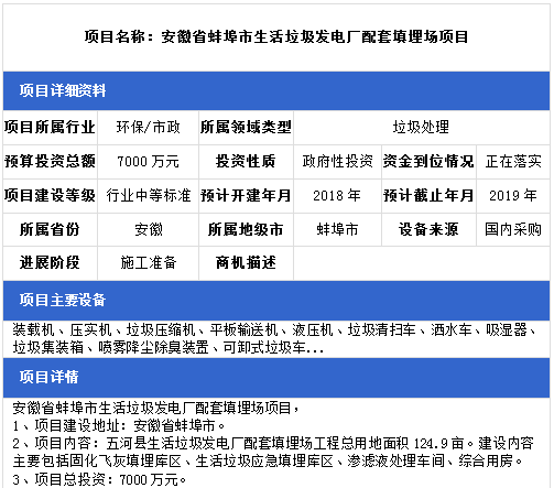 中項(xiàng)網(wǎng)獨(dú)家授權(quán)北極星固廢網(wǎng)發(fā)布最新垃圾處理項(xiàng)目(2019年1月2日更新),其中包括垃圾填埋場項(xiàng)目、垃圾發(fā)電廠配套垃圾填埋場項(xiàng)目、生活垃圾中轉(zhuǎn)站項(xiàng)目等。具體內(nèi)容如下: