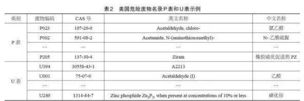 根據(jù)危險特性以及危險廢物的來源,美國列表危險廢物名錄共分為四類,即F表、K表、P表和U表(見表1和表2)。
