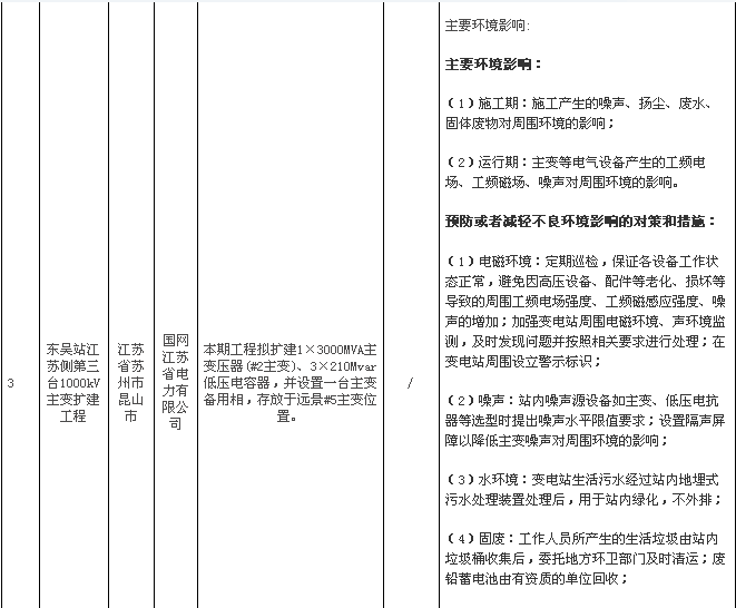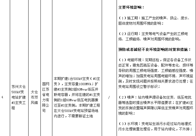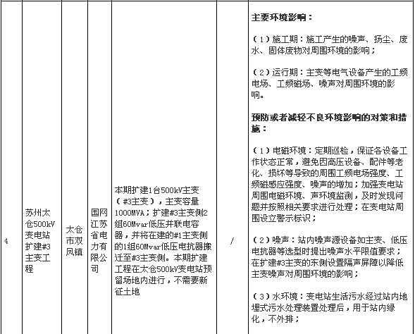 近日,江蘇省環(huán)境廳發(fā)布了擬對(duì)輸變電項(xiàng)目環(huán)評(píng)文件作出審批意見(jiàn)的公告,對(duì)項(xiàng)目影響環(huán)境的影響和對(duì)策提出了相應(yīng)要求,詳情如下: