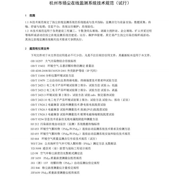 杭州市揚(yáng)塵在線監(jiān)測(cè)系統(tǒng)技術(shù)規(guī)范(試行)