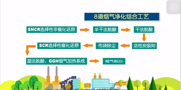 煙氣處理。九峰采用煙氣凈化工藝處理廢氣,焚燒后的煙氣經(jīng)過爐內(nèi)SNCR脫銷半干法旋轉(zhuǎn)噴霧反應(yīng)塔等八道處理工藝。