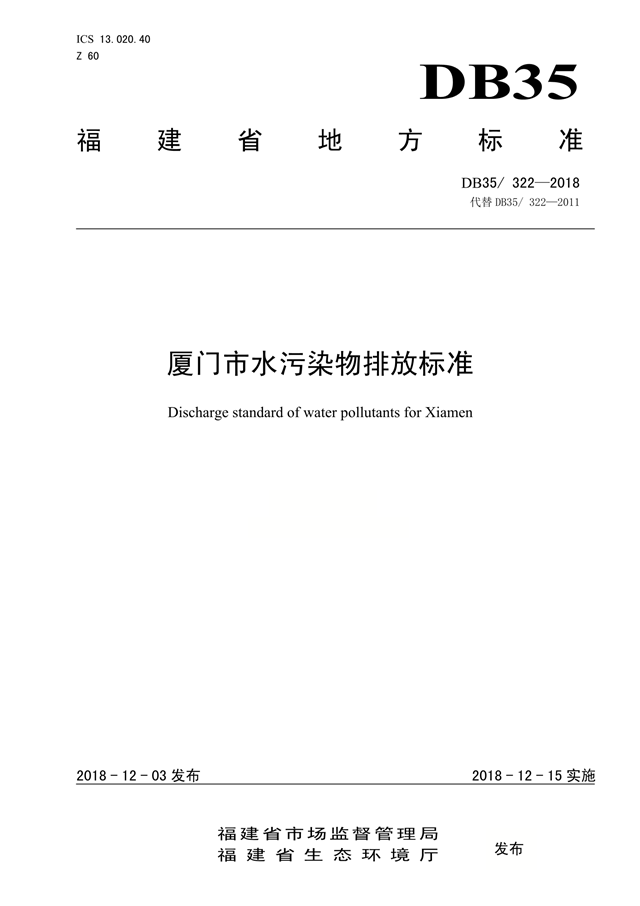 為持續(xù)改善廈門市轄區(qū)水環(huán)境質(zhì)量,促進經(jīng)濟社會科學(xué)發(fā)展,在福建省市場監(jiān)督管理局的支持下,福建省生態(tài)環(huán)境廳、廈門市環(huán)境保護局組織廈門市環(huán)境科學(xué)研究院對原有的《廈門市水污染物排放標(biāo)準(zhǔn)》進行修訂,新標(biāo)準(zhǔn)日前已經(jīng)福建省政府批準(zhǔn),于2018年12月15日起實施。