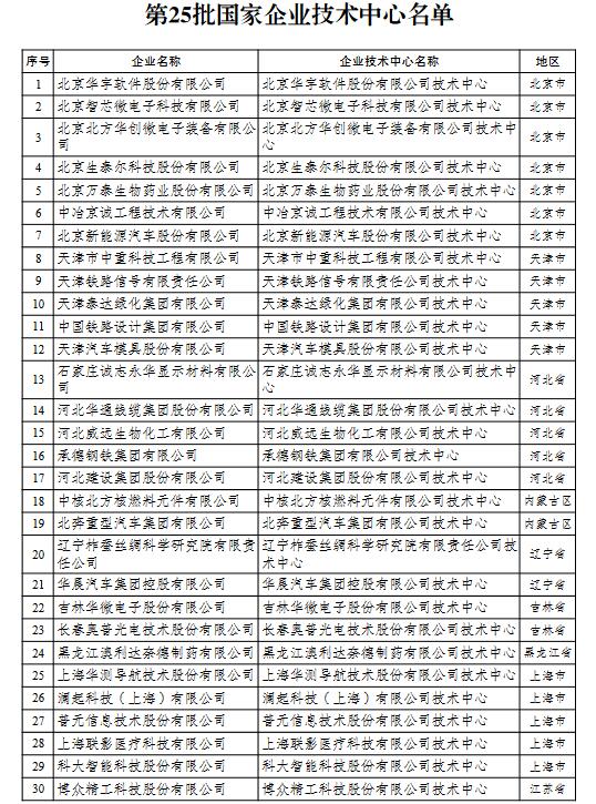 根據(jù)《國家企業(yè)技術(shù)中心認(rèn)定管理辦法》,經(jīng)審定,現(xiàn)將第25批國家企業(yè)技術(shù)中心名單及全部國家企業(yè)技術(shù)中心名單通知如下。