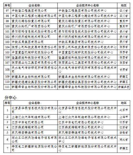 一、確認(rèn)北京華宇軟件股份有限公司等111家技術(shù)中心、北京易華錄信息技術(shù)股份有限公司等7家分中心,自本通知發(fā)布之日起具有國家企業(yè)技術(shù)中心及分中心資格。