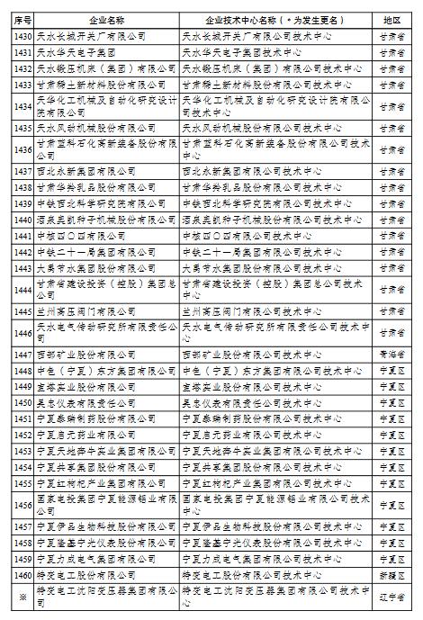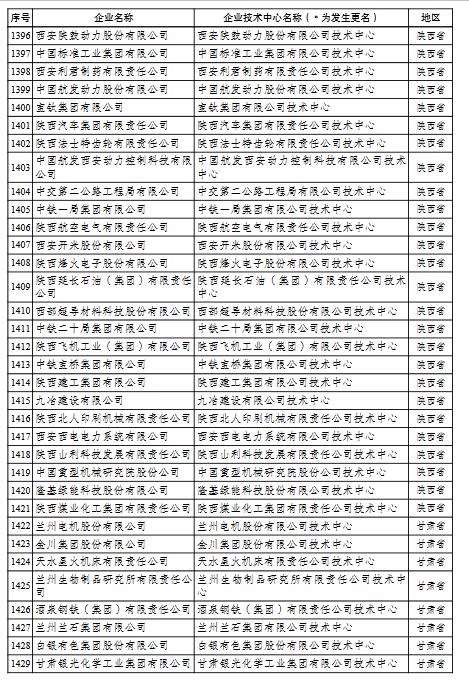 二、對41家所在企業(yè)名稱發(fā)生變更的國家企業(yè)技術(shù)中心及分中心予以相應(yīng)更名,自所在企業(yè)更名之日(以工商行政管理機(jī)關(guān)核準(zhǔn)的日期為準(zhǔn))起仍為國家企業(yè)技術(shù)中心及分中心。