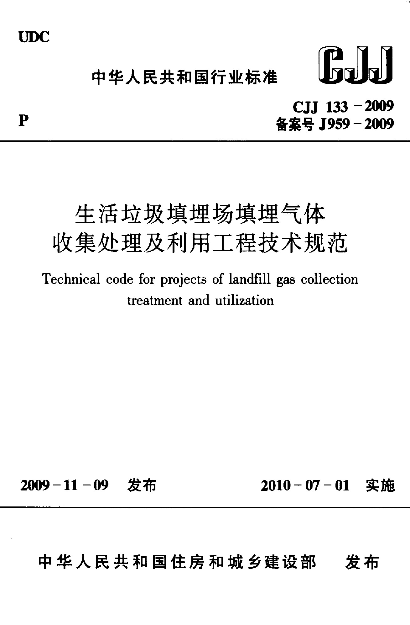 生活垃圾填埋場填埋氣體收集處理及利用工程技術(shù)規(guī)范(CJJ 133-2009)