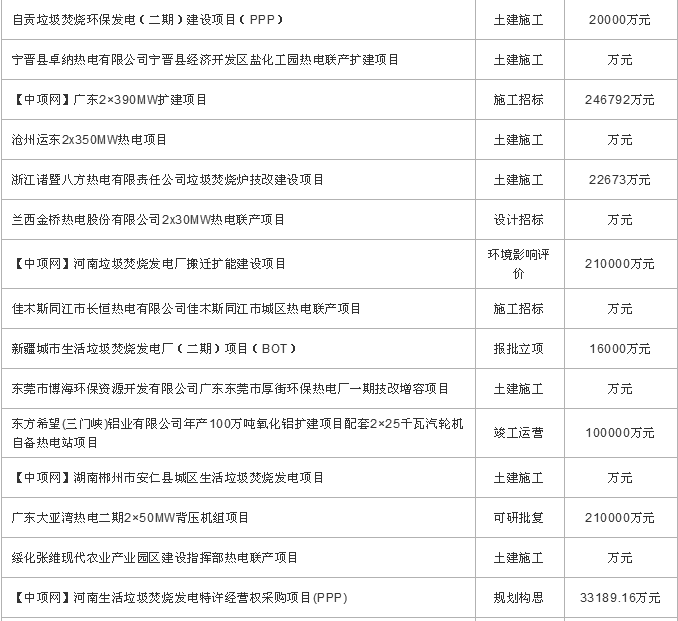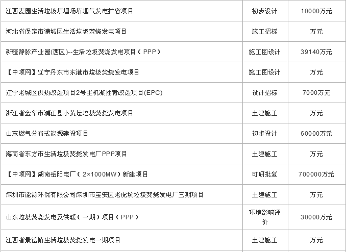 1月份垃圾發(fā)電項(xiàng)目
