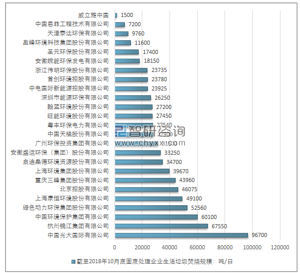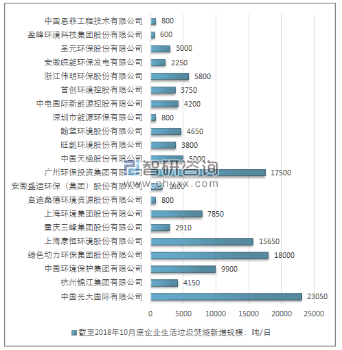 前25家企業(yè),截至2018年10月底企業(yè)生活垃圾焚燒新增規(guī)模情況