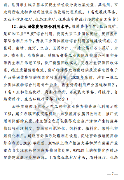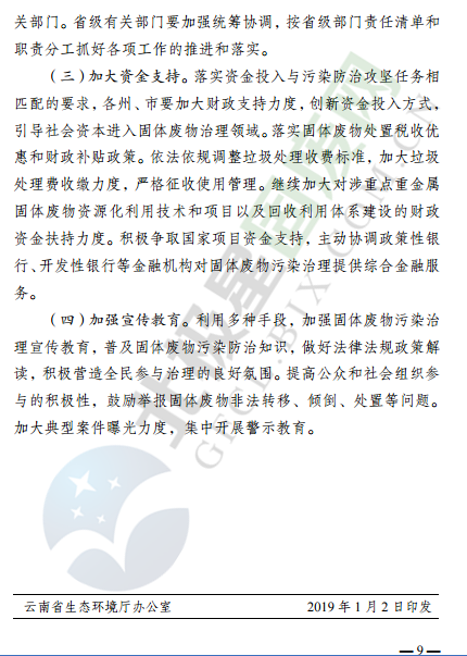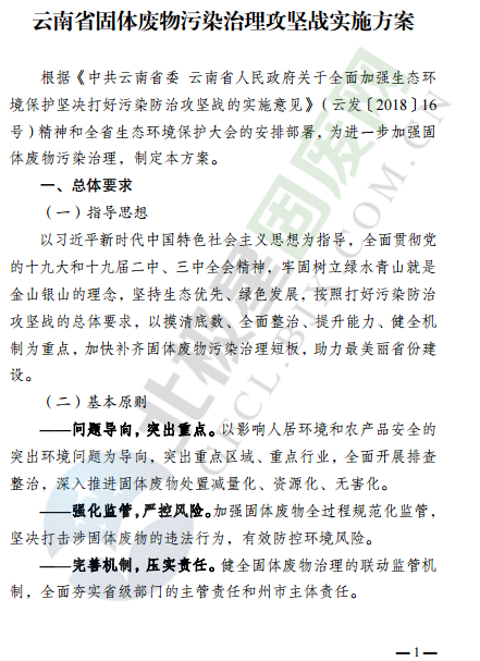 近日,云南省環(huán)境保護(hù)廳發(fā)布了云南省固體廢物污染治理攻堅(jiān)戰(zhàn)實(shí)施方案,針對固廢處理監(jiān)管、治理重點(diǎn)方向和行業(yè)等提出了明確要求,詳情如下: