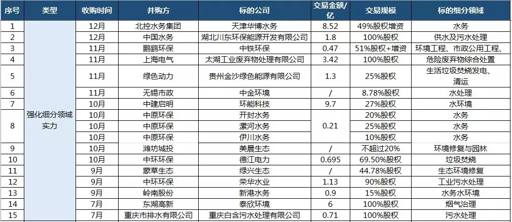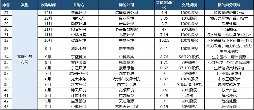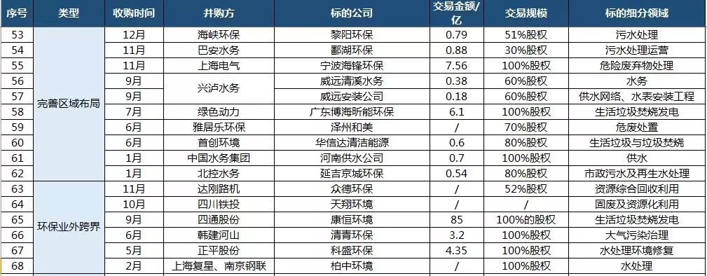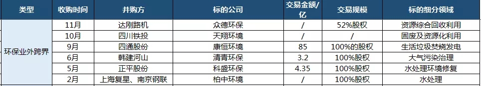2018環(huán)保業(yè)外跨界并購