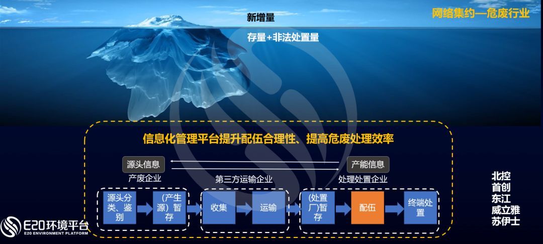 在危廢領(lǐng)域,目前已有多家企業(yè)通過(guò)建設(shè)信息化平臺(tái),收集源頭產(chǎn)廢企業(yè)信息及處理處置企業(yè)信息,協(xié)調(diào)危廢配伍,降低風(fēng)險(xiǎn)并提高項(xiàng)目處置效率。