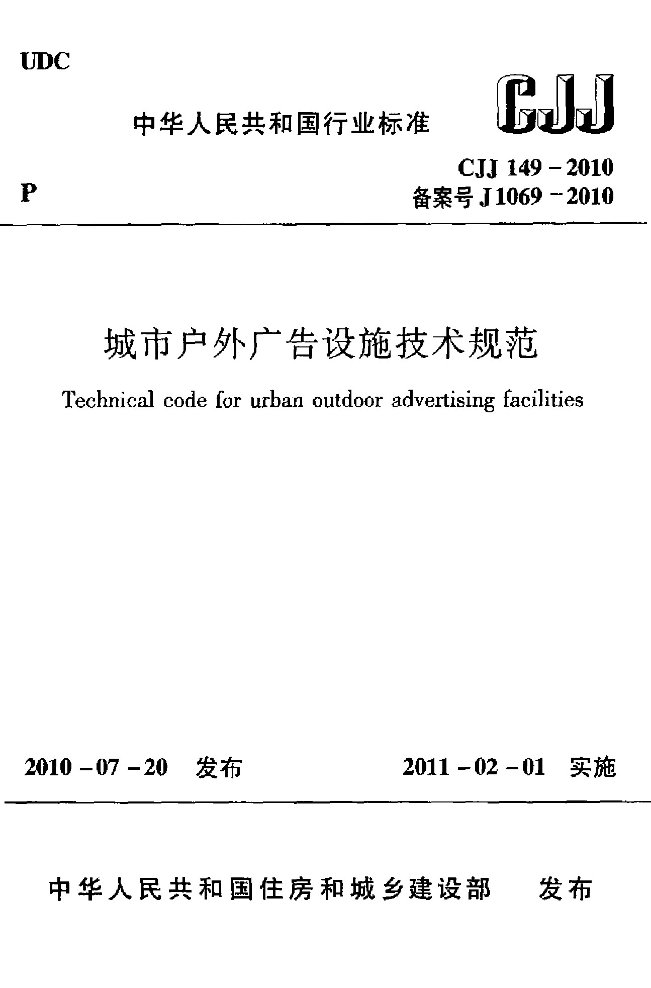 城市戶外廣告設(shè)施技術(shù)規(guī)范(CJJ 149-2010)