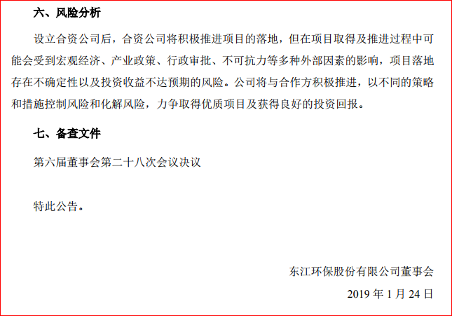 2019年1月24日,東江環(huán)保股份有限公司董事會(huì)發(fā)布公告稱,擬出資成立合資公司,打造一家專業(yè)化的環(huán)保服務(wù)企業(yè)。