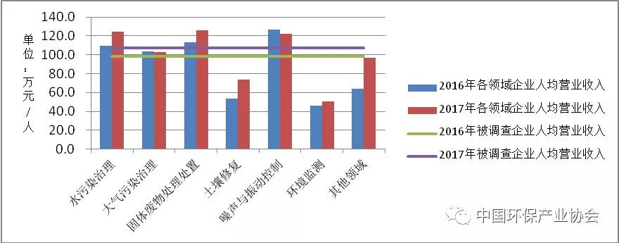 從勞動(dòng)生產(chǎn)率看,規(guī)模以上被調(diào)查企業(yè)人均營(yíng)業(yè)收入和企業(yè)平均營(yíng)業(yè)收入均低于2017年規(guī)模以上工業(yè)企業(yè)平均值,反映了與傳統(tǒng)工業(yè)行業(yè)平均水平相比,環(huán)保產(chǎn)業(yè)生產(chǎn)效率較低。與2016年相比,2017年相同樣本企業(yè)的平均人均營(yíng)業(yè)收入、企業(yè)平均營(yíng)業(yè)收入均有所提高,分別提高了9.3%、15.4%。