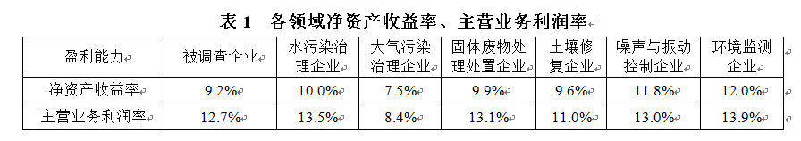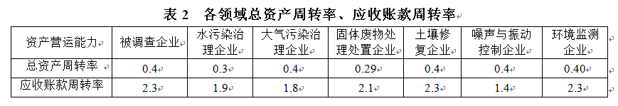 從盈利能力看,被調(diào)查企業(yè)凈資產(chǎn)收益率平均值低于2016年企業(yè)績(jī)效評(píng)價(jià)標(biāo)準(zhǔn)值中工業(yè)企業(yè)凈資產(chǎn)收益率的優(yōu)秀值。與2016年相比,2017年相同樣本企業(yè)凈資產(chǎn)收益率和主營(yíng)業(yè)務(wù)利潤(rùn)率均有所下滑。反映我國(guó)環(huán)保企業(yè)資產(chǎn)收益能力及獲利水平出現(xiàn)降低趨勢(shì),盈利能力有待提升。