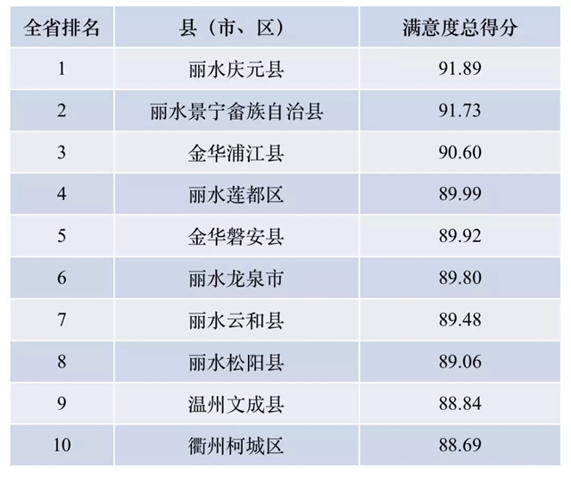 生態(tài)環(huán)境好不好,老百姓說了算。日前,2018年度浙江省生態(tài)環(huán)境公眾滿意度調查報告出爐。2018年社會公眾生態(tài)環(huán)境滿意度全省平均得分為82.85分,比2017年上升4.31分,實現(xiàn)了連續(xù)7年持續(xù)提升,且平均得分首次突破80分,其中設區(qū)市得分最高的前三名依次是麗水、衢州、臺州,縣(市、區(qū))得分最高的前三名依次是麗水慶元縣、景寧畬族自治縣和金華浦江縣。
