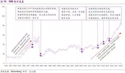 縱觀WM發(fā)展的歷史,它既享受到外部經(jīng)濟(jì)和行業(yè)高速發(fā)展所帶來的廣闊市場,也需經(jīng)歷經(jīng)濟(jì)危機(jī)和市場轉(zhuǎn)型所帶來的陣痛。公司為搶占市場份額,穩(wěn)固龍頭地位,實(shí)現(xiàn)股東最大化方面做出了多方面努力,制定了各類執(zhí)行策略以期達(dá)到目標(biāo),而我們認(rèn)為其中最重要的是三項(xiàng)策略,也是我們將進(jìn)一步細(xì)致分析的,即兼并收購,維持價(jià)格領(lǐng)袖地位,以及探索差異化路線。