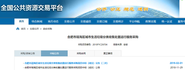 合肥市瑤海區(qū)城市生活垃圾分類收集處置運行服務(wù)采購項目發(fā)布二次中標(biāo)公告,浙江聯(lián)運環(huán)境工程股份有限公司成為中標(biāo)的社會資本方,中標(biāo)金額為2094.96萬(3年服務(wù)期)。