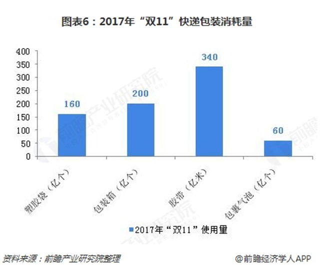 據(jù)測算,2017年“雙11”巨大交易額背后:快遞業(yè)包裝物回收率很低400.6億件快遞產(chǎn)生約800萬噸廢棄物,占全國生活垃圾總量的2%。其中,消耗塑膠袋超過160億個、包裝箱200億個、膠帶340億米、包裹氣泡60億個。這意味著隨之產(chǎn)生的海“雙11”巨大交易額背后:快遞業(yè)包裝物回收率很低包裝垃圾可以擺滿近40萬個足球場,僅封箱膠帶就可繞赤道超過800圈。