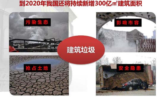 我國建筑垃圾存在數量快速增長和地域分布不平衡的特點。保守估計我國2017年共計產生建筑垃圾15.93億噸。結合住建部公布的最新規(guī)劃,到2020年中國還將新建住宅300億平方米,屆時,我國建筑垃圾產生量將達到峰值,預計會突破30億噸。如遇嚴重地震等自然災害,則產生量更多。