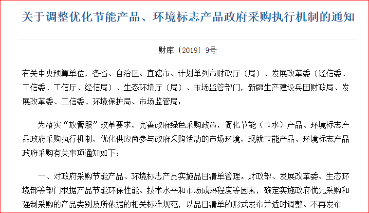 關(guān)于調(diào)整優(yōu)化節(jié)能產(chǎn)品、環(huán)境標(biāo)志產(chǎn)品政府采購(gòu)執(zhí)行機(jī)制的通知
