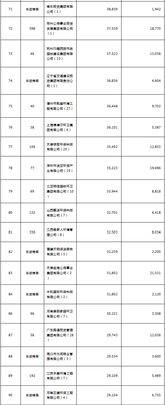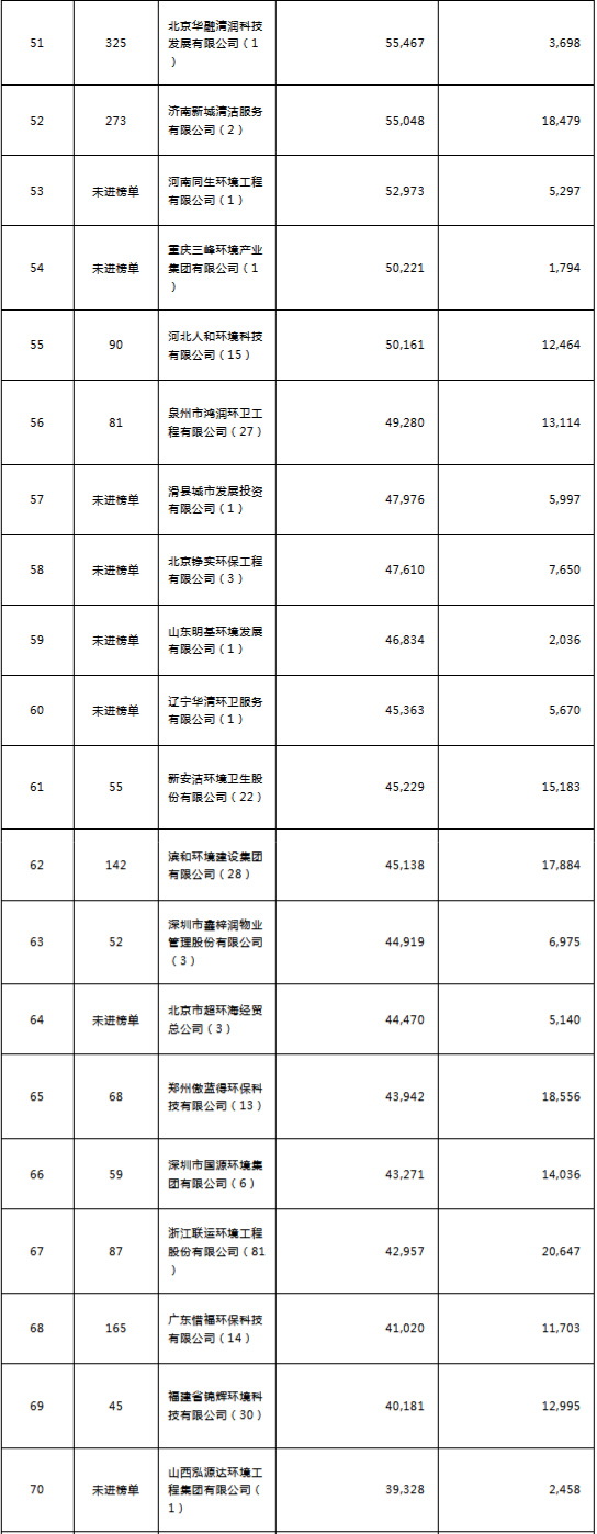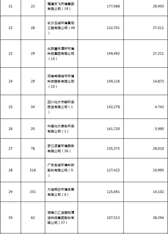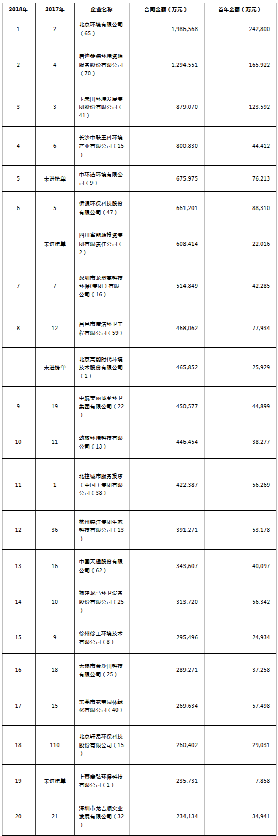 環(huán)境司南2018年度環(huán)衛(wèi)服務(wù)企業(yè)(簽約能力)百強榜