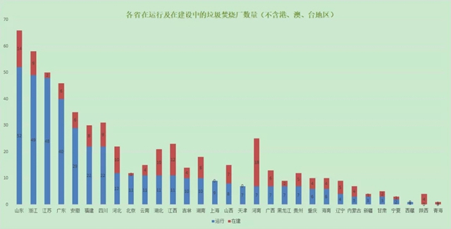 那我們先來看一下目前全國(guó)的垃圾焚燒廠在各省、直轄市分布情況: