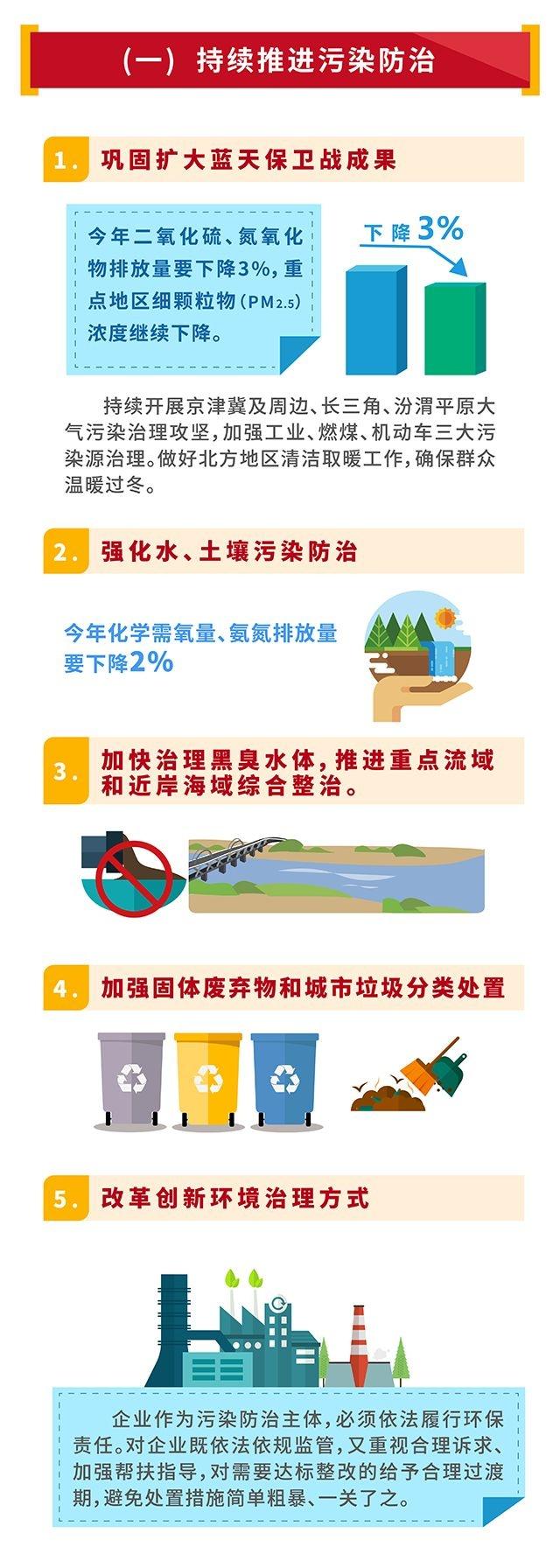 近日,生態(tài)環(huán)境部官方微信整理了今年政府工作報告有關(guān)生態(tài)環(huán)境治理方面的內(nèi)容,包括鞏固擴(kuò)大藍(lán)天保衛(wèi)戰(zhàn)的成果、加快黑臭水體的污染防治等,詳情如下: