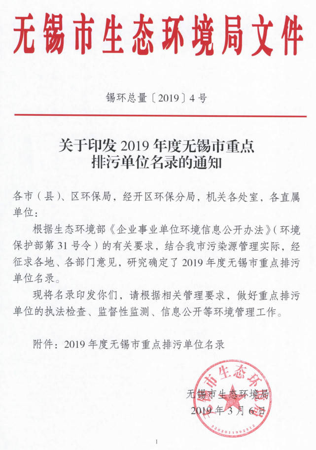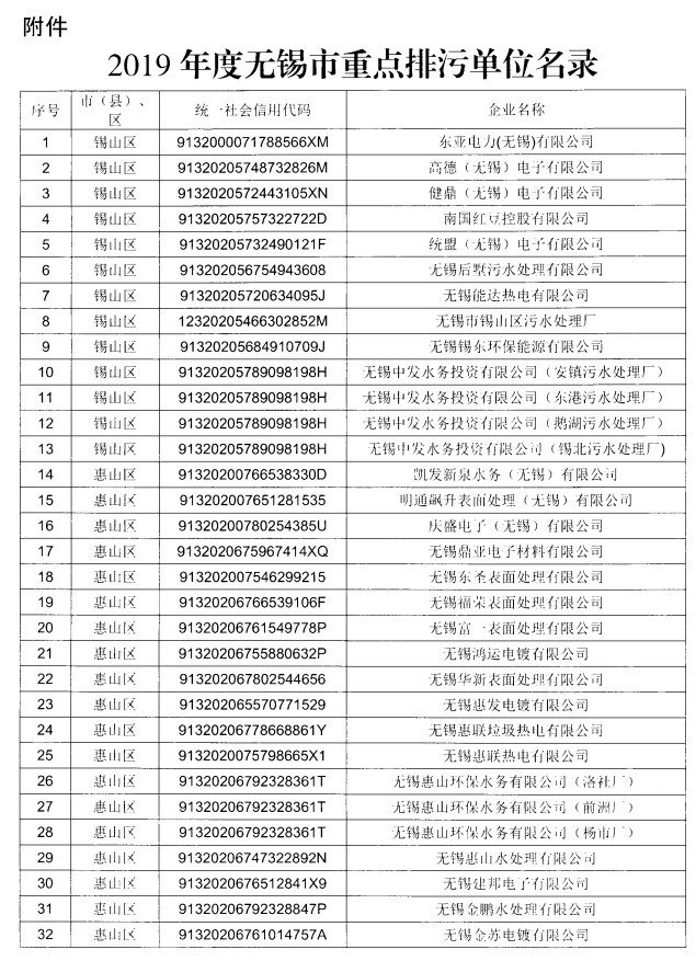 日前,無錫市發(fā)布2019年度無錫市重點排污單位名錄,包括眾多污水處理廠、鋼鐵企業(yè)、水泥企業(yè)、固體廢物處置企業(yè)等,全文如下: