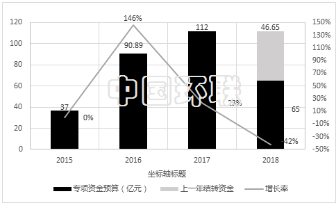 2017年中央財(cái)政預(yù)算土壤污染防治專項(xiàng)資金達(dá)到112億元,2018年預(yù)算數(shù)為65億元,實(shí)際預(yù)算為111.65億元,基本與同期持平。