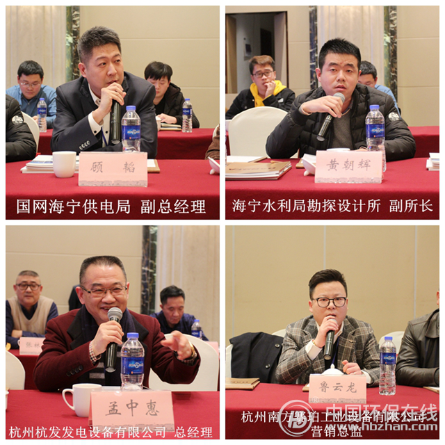 國(guó)網(wǎng)海寧供電局副總經(jīng)理顧韜、海寧水利局勘探設(shè)計(jì)所副所長(zhǎng)黃朝輝、杭州杭發(fā)發(fā)電設(shè)備有限公司總經(jīng)理孟中惠、杭州南方賽珀工業(yè)設(shè)備有限公司營(yíng)銷(xiāo)總監(jiān)魯云龍作現(xiàn)場(chǎng)交流。