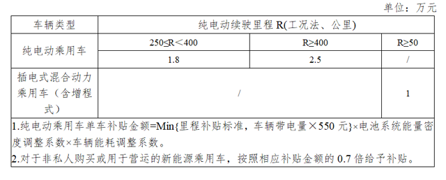 新能源乘用車補貼標準