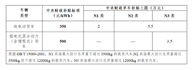 新能源貨車補貼標準