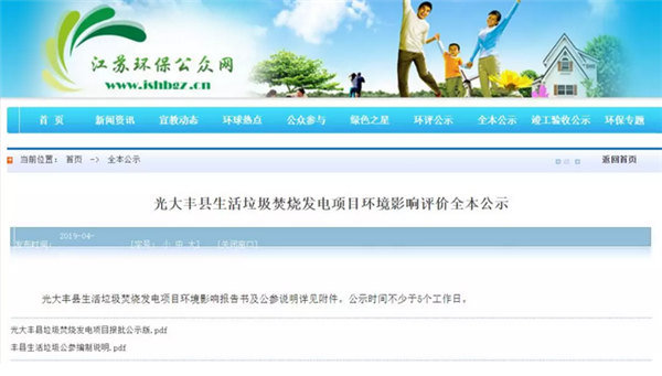 65元/噸丨豐縣生活垃圾焚燒發(fā)電項目 花落光大綠色環(huán)保