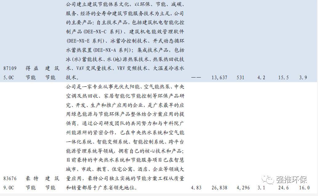 根據(jù)上述條件,我們篩選出21家具有科創(chuàng)板基因的新三板環(huán)保公司,包括:
