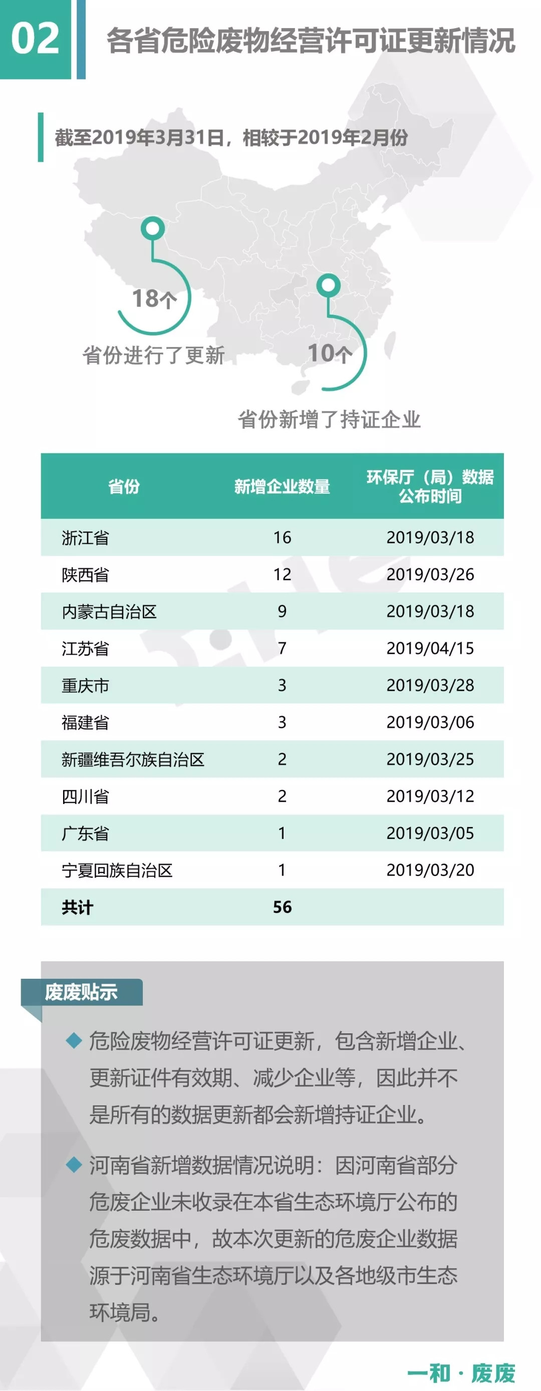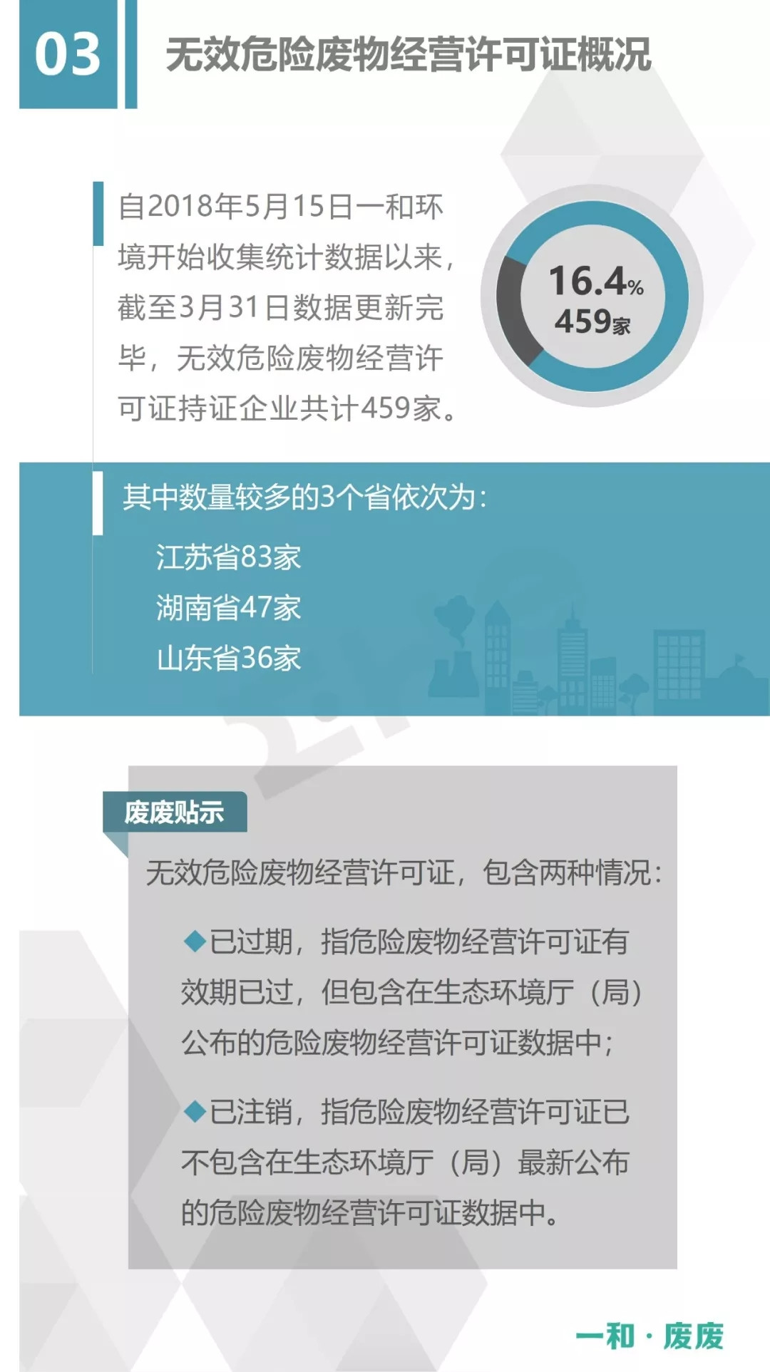 原標題:2019年3月全國危險廢物經(jīng)營許可證統(tǒng)計概況