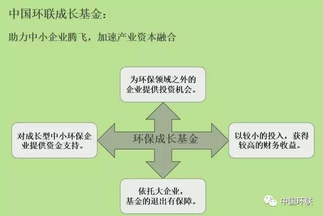 與此同時,為助力中小企業(yè)騰飛,加速產(chǎn)業(yè)資本融合,成立了 “中國環(huán)聯(lián)成長基金”,投資者首先面向中國環(huán)聯(lián)會員單位,也面向其它行業(yè)的企業(yè)和高凈值客戶,第一期規(guī)模暫定為5000萬元。 投資目標包括:環(huán)保行業(yè)的擬上市企業(yè)、高成長的細分行業(yè)龍頭、風口上的創(chuàng)新型公司等。