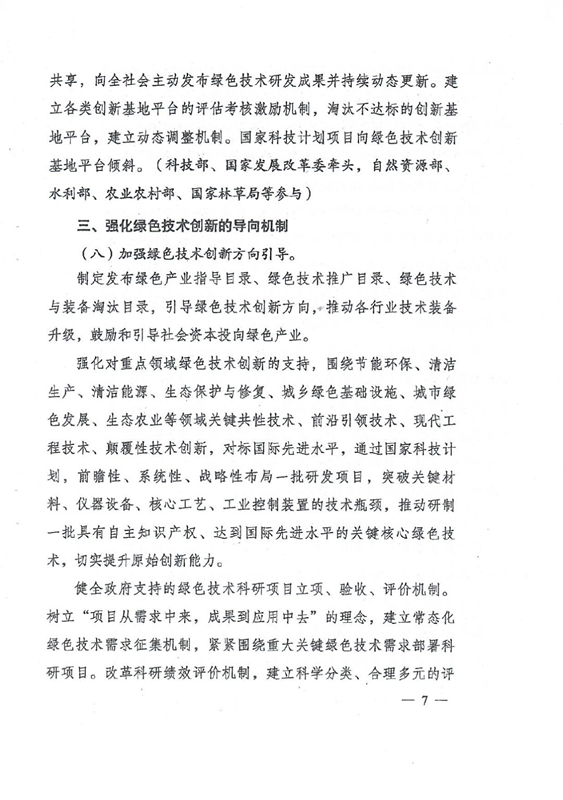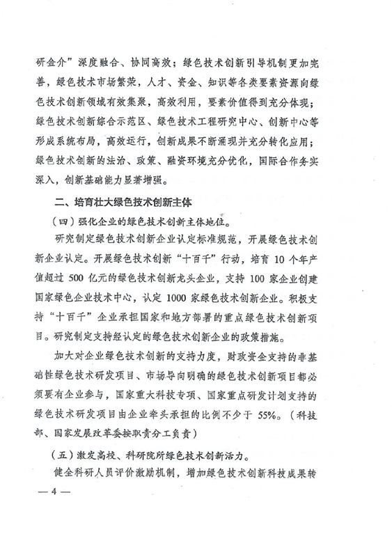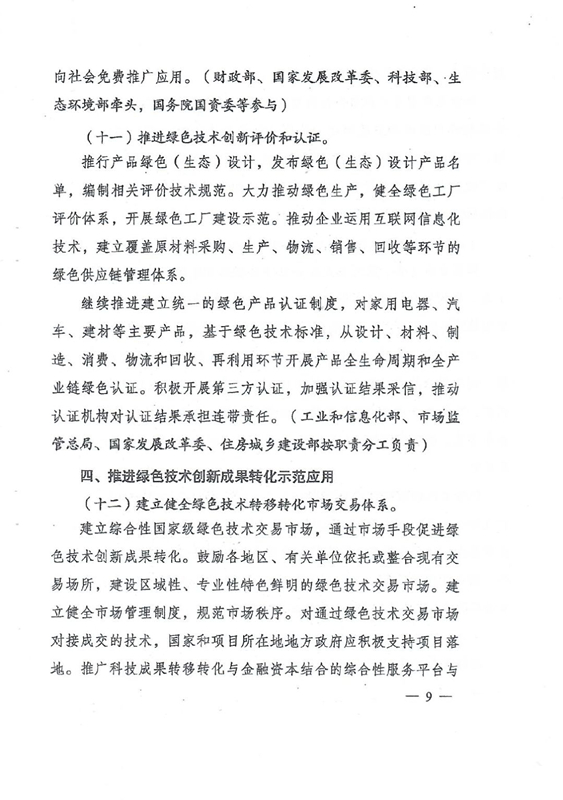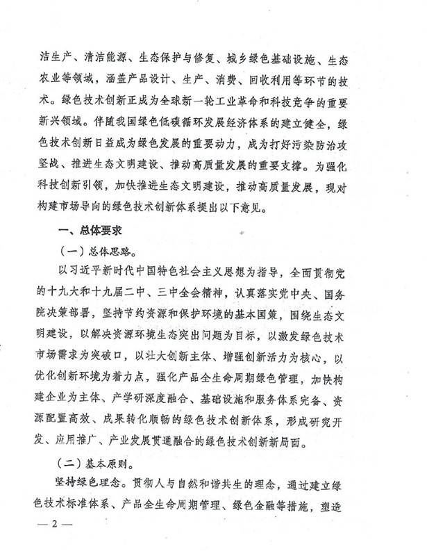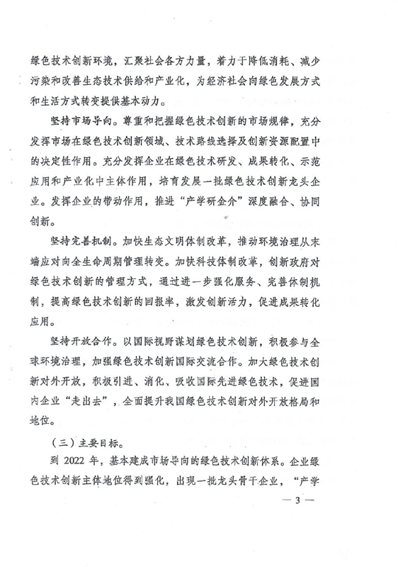 綠色技術(shù)創(chuàng)新是綠色發(fā)展的重要?jiǎng)恿?,是打好污染防治攻?jiān)戰(zhàn)、推進(jìn)生態(tài)文明建設(shè)、促進(jìn)高質(zhì)量發(fā)展的重要支撐。要以解決資源環(huán)境生態(tài)突出問題為目標(biāo),堅(jiān)持市場(chǎng)導(dǎo)向,強(qiáng)化綠色引領(lǐng),加快構(gòu)建企業(yè)為主體、產(chǎn)學(xué)研深度融合、基礎(chǔ)設(shè)施和服務(wù)體系完備、資源配置高效、成果轉(zhuǎn)化順暢的綠色技術(shù)創(chuàng)新體系,推動(dòng)研究開發(fā)、應(yīng)用推廣、產(chǎn)業(yè)發(fā)展貫通融合。