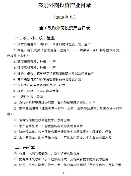鼓勵外商投資產(chǎn)業(yè)目錄(2019年版)全國鼓勵外商投資產(chǎn)業(yè)目錄