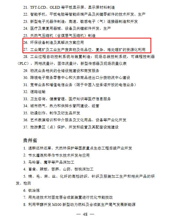 國家發(fā)展改革委、商務(wù)部6月30日發(fā)布《鼓勵外商投資產(chǎn)業(yè)目錄(2019年版)》,促進外資在節(jié)能環(huán)保設(shè)備、環(huán)保技術(shù)等領(lǐng)域投資,自2019年7月30日起施行。詳情如下: