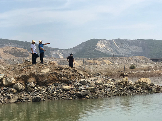 生態(tài)環(huán)境部派出的排查人員在排查現(xiàn)場(chǎng)通過手機(jī)對(duì)排查情況進(jìn)行錄入登記。郄建榮 攝