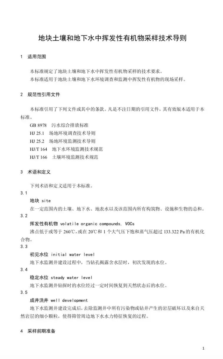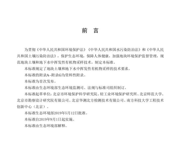 為貫徹《中華人民共和國環(huán)境保護法》《中華人民共和國水污染防治法》和《中華人民共和國土壤污染防治法》,保護生態(tài)環(huán)境,保障人體健康,加強地塊環(huán)境保護監(jiān)督管理,規(guī)范地塊土壤和地下水中揮發(fā)性有機物采樣技術,制定本標準。