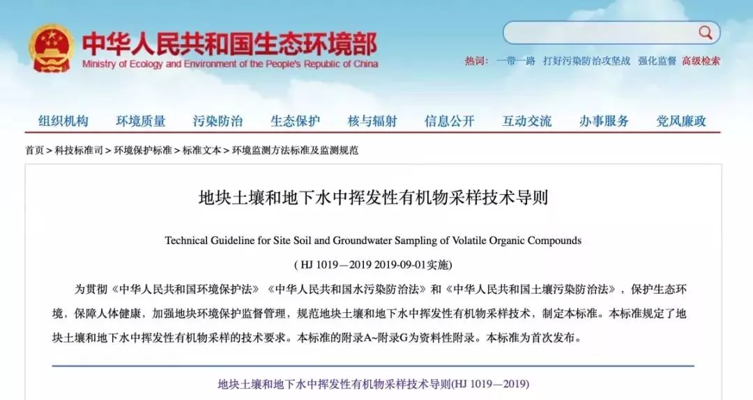 環(huán)境部首次發(fā)布《地塊土壤和地下水中揮發(fā)性有機物采樣技術導則》