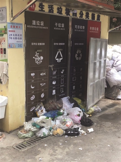 “好幾次我夜里回來(lái),都看到垃圾房門(mén)口堆放了不少垃圾,成為一處‘衛(wèi)生死角’。即使到了投放時(shí)間,工作人員再來(lái)收拾清理,那如何監(jiān)督、指導(dǎo)居民按標(biāo)準(zhǔn)分類(lèi)投放呢?”小沈告訴記者,對(duì)于居民的這種行為,平日只能靠小區(qū)物業(yè)保安勸阻,“和垃圾分類(lèi)志愿者聊天時(shí),他們希望在垃圾房門(mén)口裝上攝像頭,像交通違法曝光一樣,拍照取證由執(zhí)法部門(mén)進(jìn)行查處。”