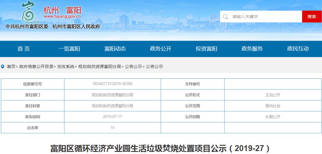 這不,近日富陽區(qū)循環(huán)經濟產業(yè)園生活垃圾焚燒處置項目就進行了公示。