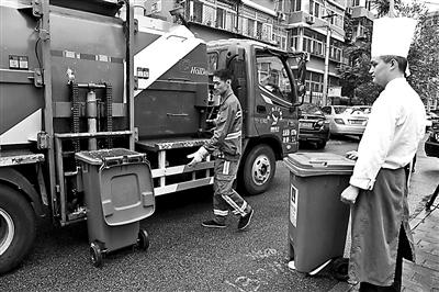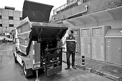朝陽區(qū)白領(lǐng)家園小區(qū)的垃圾由不同的垃圾運(yùn)輸車分類運(yùn)輸攝影/本報記者 黑建軍