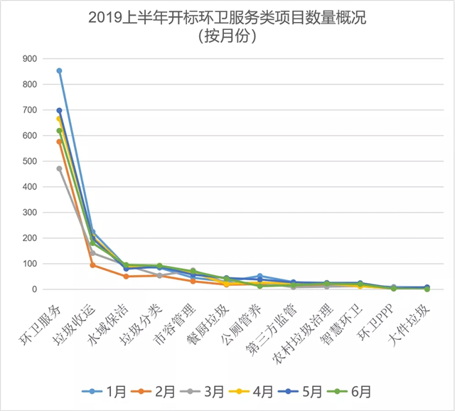 原標(biāo)題:上半年全國(guó)共開(kāi)標(biāo)6954個(gè)環(huán)衛(wèi)服務(wù)類(lèi)項(xiàng)目標(biāo)段,環(huán)衛(wèi)服務(wù)、垃圾收運(yùn)、水域保潔、垃圾分類(lèi)、市容管理開(kāi)標(biāo)數(shù)量名列前五